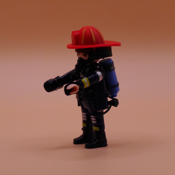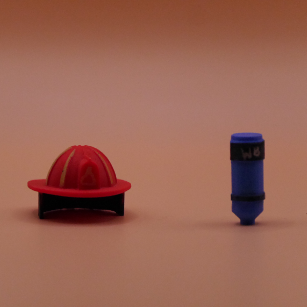 Robuster Feuerwehrhelm und abnehmbares Atemschutzgerät als kindgerechtes Zubehör-Set, inspiriert von „Firefighting Simulator Ignite“ und im heimischen 3D-Druckverfahren gefertigt. Kräftige Farben, detailreiche Modelle und ergonomische Formen regen Kinder zum kreativen Rollenspiel an und bringen digitale Ideen ins echte Spielzimmer.