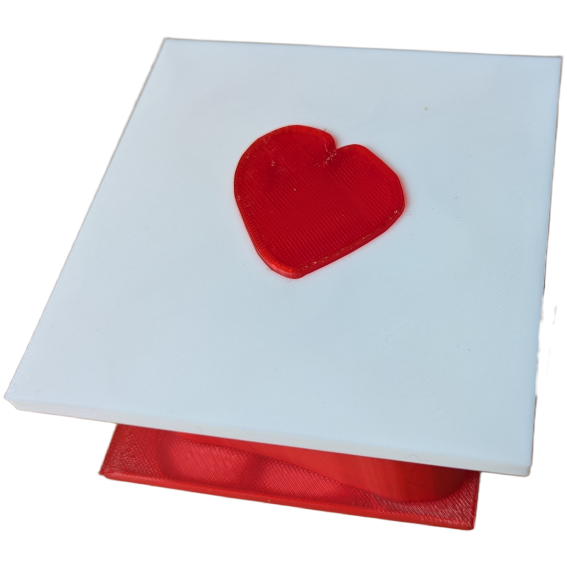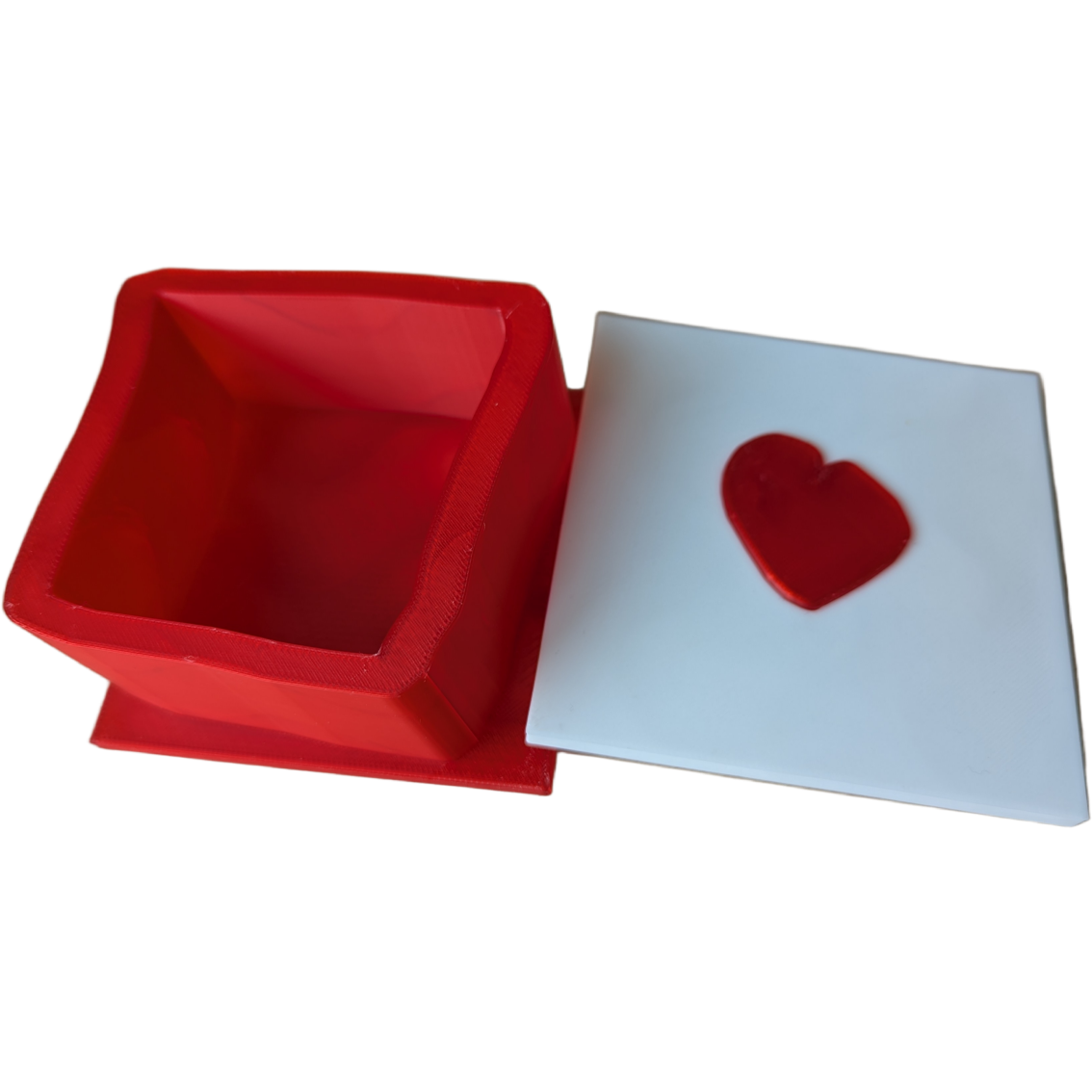 Diese kreative Geschenkbox wurde als digitales Erstlingswerk von einem Kind entworfen und mithilfe von 3D-Druck realisiert. Die unregelmäßigen, lebendigen Formen machen sie zu einem originellen Hingucker – ideal, um persönliche Geschenke mit einer Extraportion Kreativität zu verpacken.