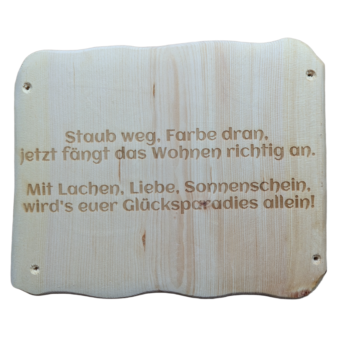 Naturbelassenes Holzschild mit liebevoll eingraviertem Spruch oder Familiennamen, das euren Hauseingang oder Flur in ein persönliches kleines Glücksparadies verwandelt – ideal als Geschenk zum Einzug, zur Hochzeit oder für alle, die ihr Zuhause herzlich und mit Handarbeit dekorieren möchten.