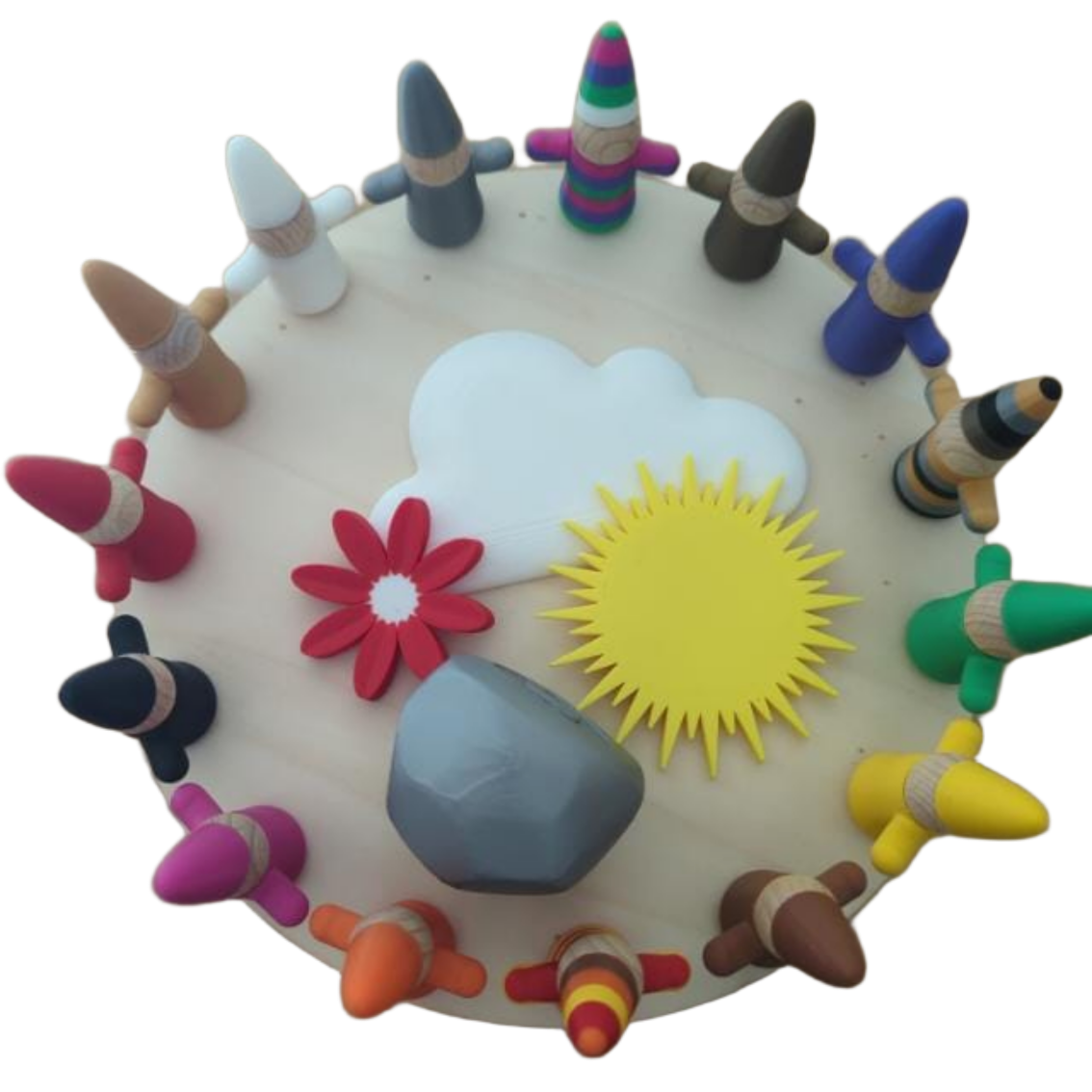 Die Zwergenkiste macht Morgenrituale in der Krippe lebendig: Farbenfrohe Zwerge, Sonne, Wolke und Blumen laden zum gemeinsamen Begrüßen und Erzählen ein. Entwickelt von einer Erzieherin und individuell gefertigt, unterstützt sie spielerisch die Gemeinschaft und fördert Rituale im Gruppenalltag.